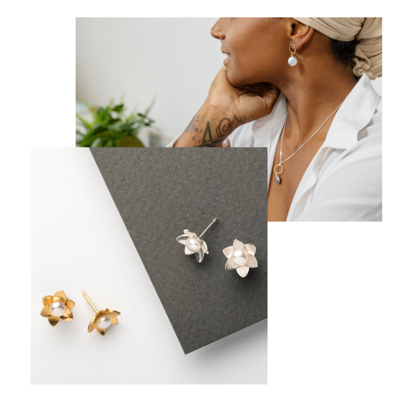 Combining the natural elegance of freshwater pearls with sculptural floral forms, her designs are perfect for marking life’s special moments — from meaningful birthdays to a pearl anniversary!