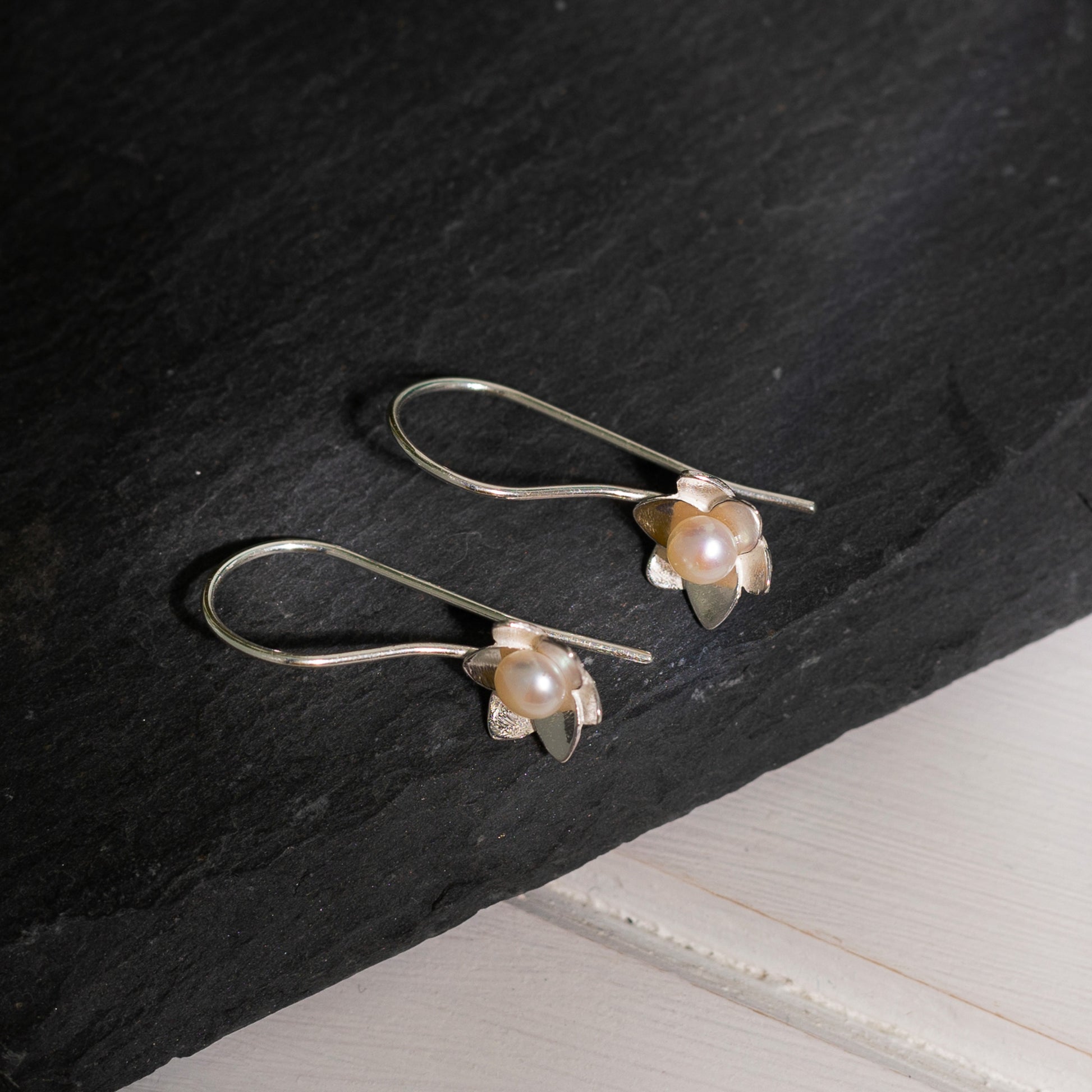 Dainty Daffodil Pearl Drop Earrings